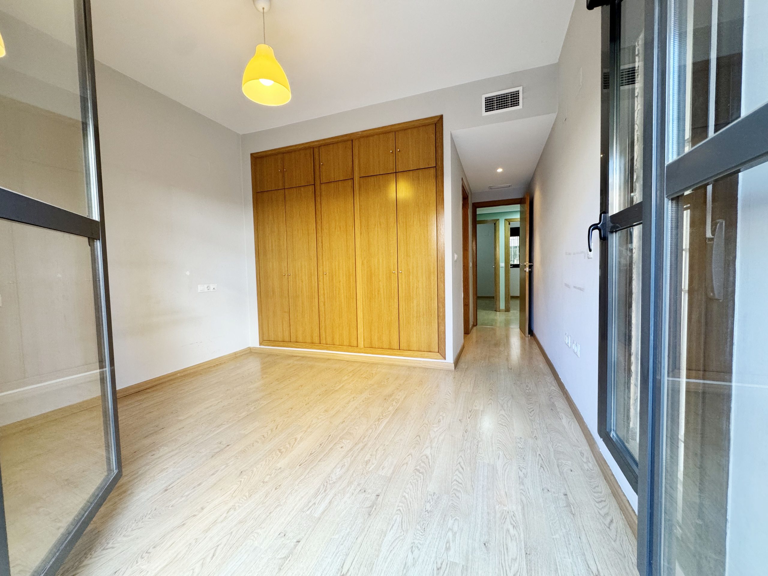 La zona de descanso está compuesta por tres dormitorios y dos baños completos. Todos los dormitorios cuentan con armarios empotrados y el dormitorio principal resulta especialmente acogedor, ya que cuenta con baño en suite para mayor privacidad y acceso directo a la terraza, un detalle que aporta un extra de comodidad y luminosidad.
